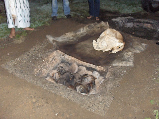 For dinner, we visited a marae. where we were able to participate in the traditional Maori way of cooking called hangi. (Well, we didn't actually participate in the cooking itself, just the eating!) A hangi is where all of the food is cooked in a pit in the earth. Before being allowed to enter the marae, we of course had to go through the customary welcoming ceremony. Then we were entertained with song and dance, including a performance of the haka (the traditional war dance).